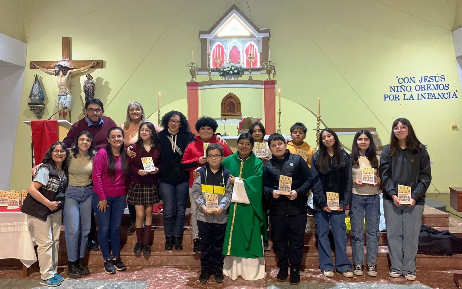 Luego se llevó a cabo la acción de gracias en el templo parroquial, con la participación de los adolescentes de la comunidad Jesús de la Divina Misericordia, quienes recibirán el sacramento de la Confirmación, acompañados de sus familias y catequistas. En la celebración se hizo entrega de los dones y frutos del Espíritu Santo.