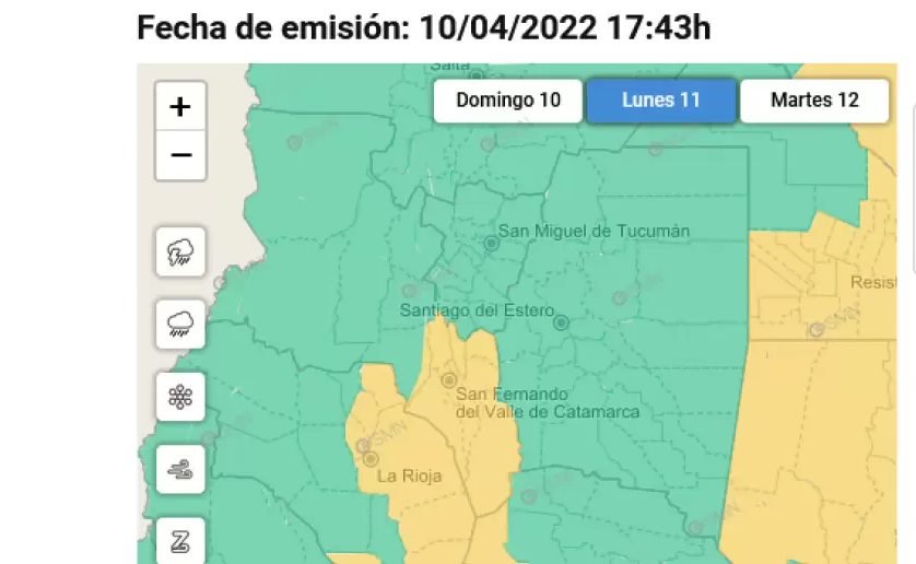 El fenómeno comenzará a regir desde la madrugada de mañana lunes, afectando las zonas de Ambato, Ancasti, Capayán, Capital, El Alto, Fray Mamerto Esquiú, La Paz, PAclín, Santa Rosa, Valle Viejo y zona serrana de Pomán.
