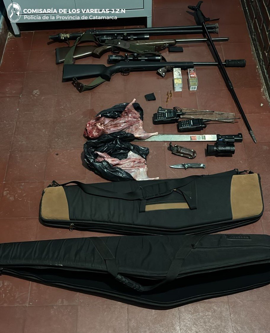 Numerarios de la Comisaría Departamental Los Varela se hicieron presentes en la localidad de Los Talas, Departamento Ambato, donde habrían constatado que dos personas del sexo masculino, mayores de edad, aparentemente estarían realizando caza furtiva.