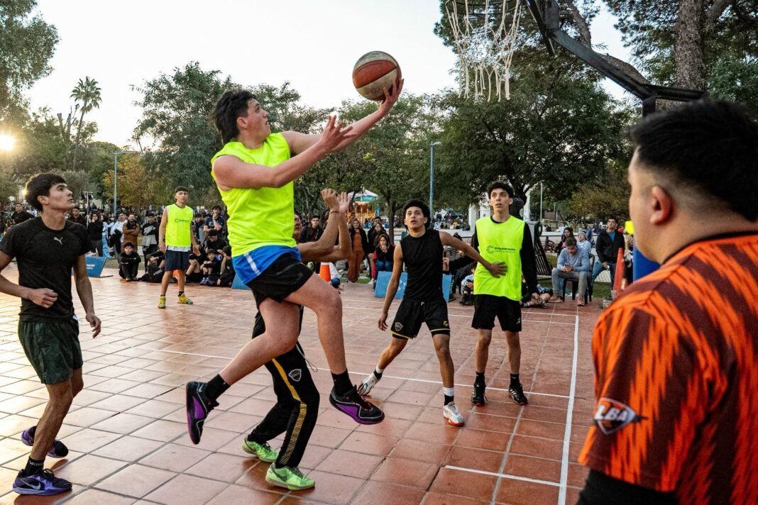 La Plaza de La Alameda fue un marco ideal donde se vivió la fiesta del Torneo de Básquet en modalidad 3×3 y Batalla Freestyle de Rap, evento organizado por la Vicegobernación que conduce Rubén Dusso, y que crece en convocatoria de público con cada edición.