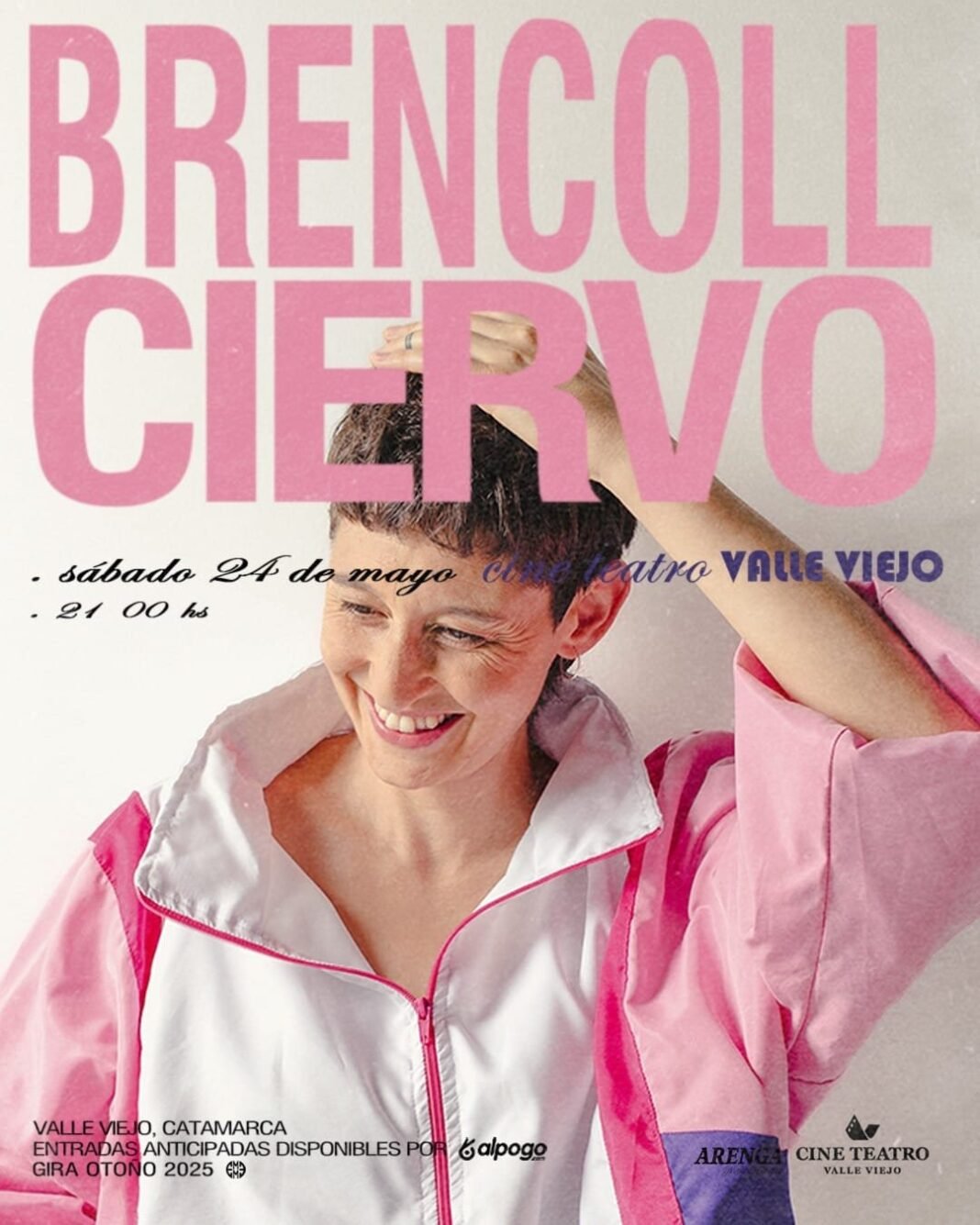 La cantante y compositora catamarqueña BRENCOLL, radicada en Córdoba, llega a su tierra para compartir una noche única junto a la banda cordobesa CIERVO, en formato banda completa. El concierto será el sábado 24 de mayo a las 21:00 horas en la Sala del Cine Teatro Valle Viejo.