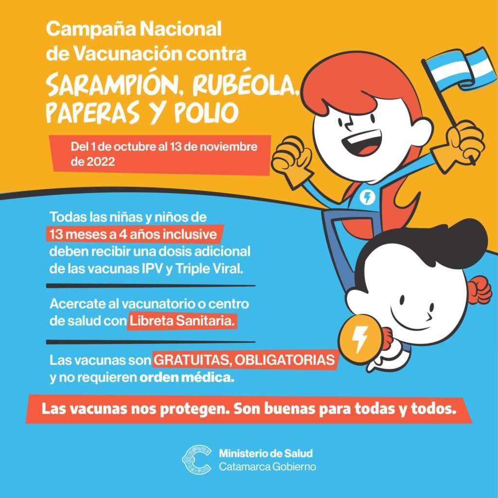 Todas las niñas y todos los niños de 13 meses a 4 años inclusive deben recibir una dosis adicional, gratuita y obligatoria de las vacunas Triple Viral (contra sarampión, rubéola y paperas) e IPV (contra poliomielitis), más allá de las dosis recibidas previamente.