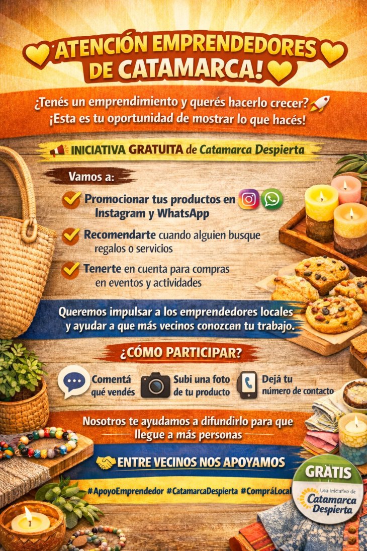 Lanzamos esta iniciativa gratuita destinada a todos los emprendedores de la provincia que quieran hacer crecer sus ventas y posicionar su marca. Queremos que, cuando un vecino busque un regalo o un servicio, lo primero que encuentre sea el trabajo de otro catamarqueño.