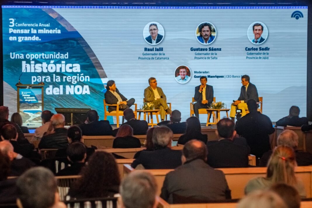 Durante la 3ra Conferencia Anual de Minería organizada por el Banco Macro donde participaron los gobernadores Raúl Jalil, Gustavo Sáenz (Salta) y Carlos Sadir (Jujuy).