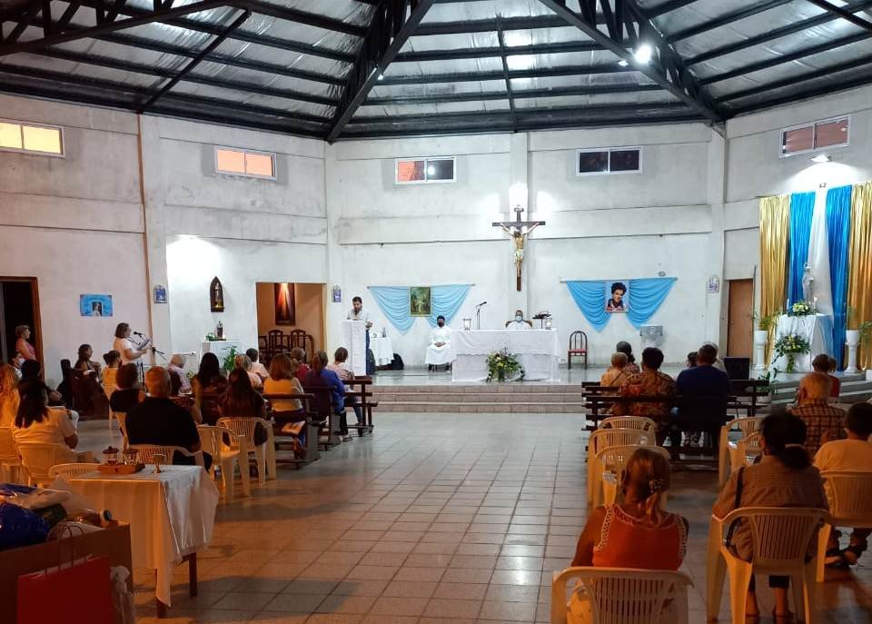 Los fieles del sector oeste de la ciudad capital festejaron este acontecimiento con una serie de actos, que dieron inicio en el lugar donde se celebró la primera Misa, con la bendición de las velas y la procesión hasta el templo. Allí participaron de la Santa Misa, presidida por el Pbro. Eduardo López Márquez, párroco de la Sagrada Familia, a cuya jurisdicción pertenece la mencionada comunidad.