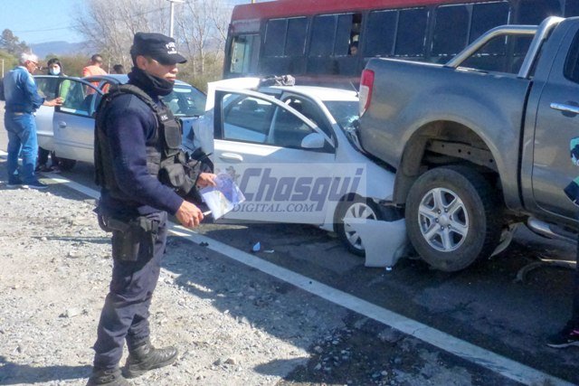Un triple choque se registró este mediodía sobre la Ruta Nacional 38, en Nueva Coneta, a unos 300 metros del puesto caminera. Aparentemente, un automóvil impactó contra la camioneta 4 x 4 y otro auto llegó por detrás y tampoco pudo evitar el impacto. Según testigos, se había formado una fila de vehículos por el control policial.