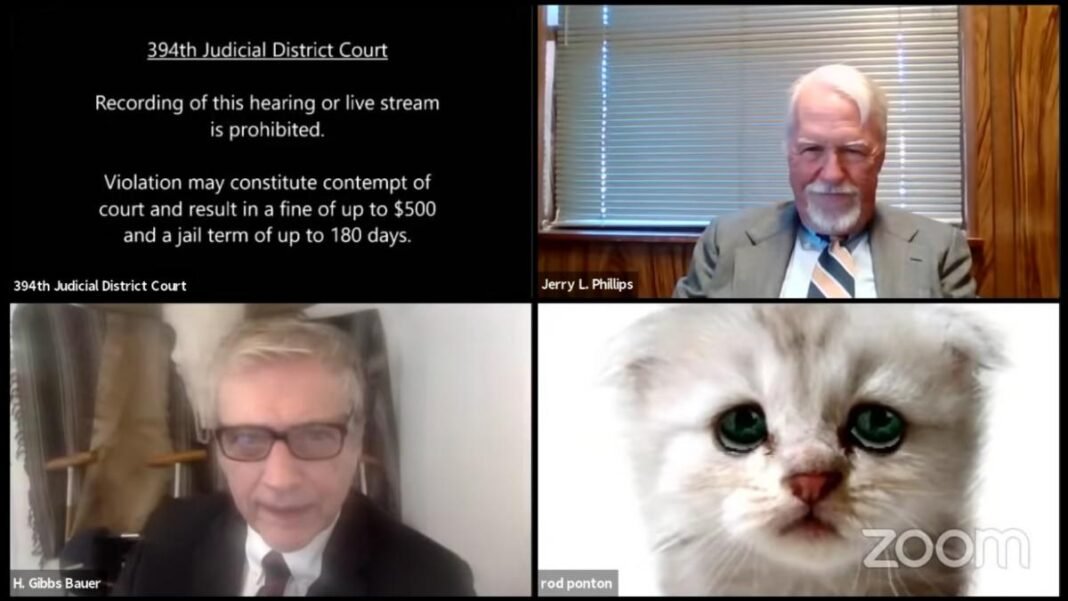 En el vídeo se muestra cómo el abogado Rod Ponton se conectó al juicio con un filtro de gato, activado por su hijo, que ni él ni sus asistentes sabían quitar. «No soy un gato», aseguraba mientras al resto de letrados.