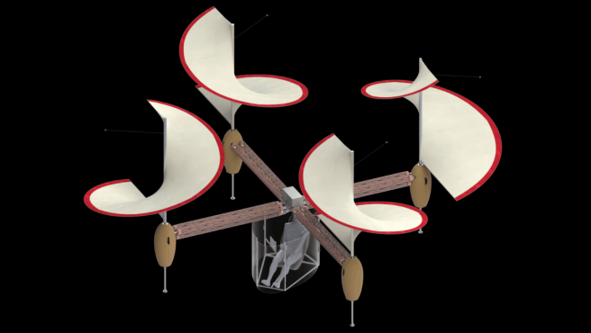 Como puedes observar en el vídeo de abajo, para construir este modelo se necesitó una estructura metálica soldada. Si haces clic en el contenido multimedia, verás al dron despegar del suelo en sus primeras pruebas.