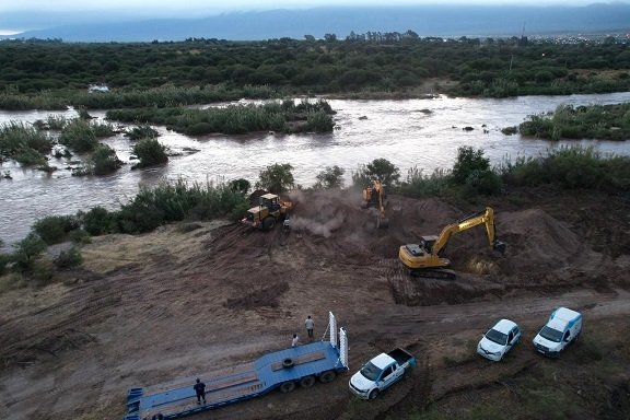 En estos momentos se trabaja con toda la maquinaria posible de la empresa y del Ministerio de Agua, Energía y Medio Ambiente en los márgenes del rio para proteger las impulsiones y las colectoras cloacales.