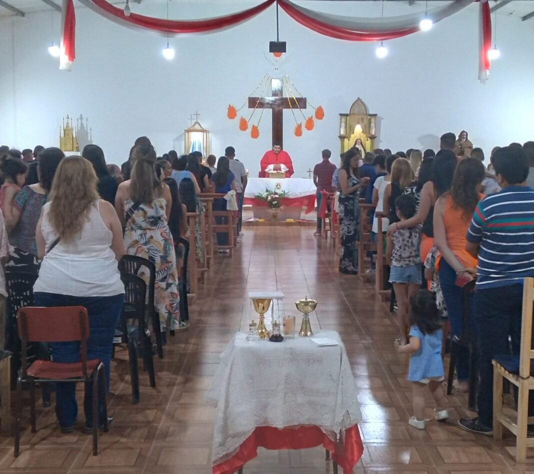 En horas de la mañana, el párroco, presbítero Héctor Salas, presidió la Santa Misa en la que niños de la comunidad recibieron por primera vez a Jesús Sacramentado.