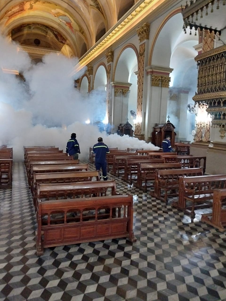 Por su parte, anoche se realizó la desinfección en todo el predio de la Catedral, acción que también estaba prevista en el Santuario de la Gruta de la Virgen del Valle.