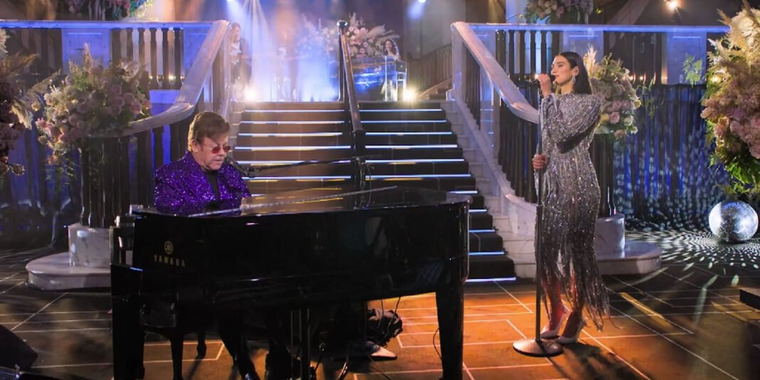Dadas las restricciones por la pandemia, el evento se realizó de forma virtual, excepto por la presentación de Elton y Dua, que hacía 15 días habían anunciado que estaban ensayando. Los dos estuvieron impecables en su performance, que comenzó con Dua interpretando “Levitating”, “Pretty Please”, “Hallucinate” y “Don’t Start Now”. Pero el momento más emotivo llegó cuando Elton se puso al piano para acompañarla en “Bennie and the Jets” y “Love again”.
