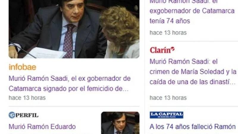 Así, Infobae publicó: “Murió Ramón Saadi, el exgobernador de Catamarca signado