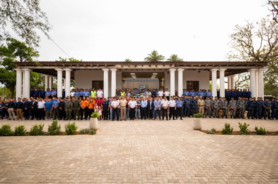 Durante el acto de reconocimiento, el mandatario provincial estuvo acompañado por el ministro de Gobierno, Justicia y Derechos Humanos, Juan Cruz Miranda; el jefe de la Policía de la provincia, Ángel Agüero; el secretario de Seguridad, Martín Miranda, entre otras autoridades.