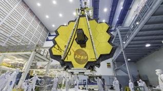2) El telescopio se desplegó como un origami: Pesa algo más de 6.200 kilogramos y una de sus piezas principales son un espejo de 18 segmentos hexagonales de 6,5 metros de diámetro y un parasol gigante de 21 metros de largo por 14 metros de ancho. Al ser tan inmenso, , el telescopio tuvo que viajar plegado para caber en el limitado espacio del cohete Ariane 5.