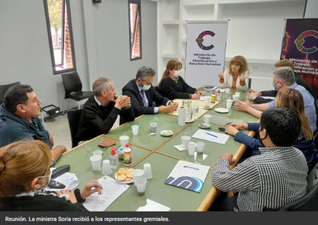 Soria y su equipo de trabajo se reunieron con representantes de los gremios de ATE, UPCN y ATSA, a quienes les informó la actualización para el segundo bimestre del 2022. Allí también se confirmó que con la liquidación de sueldos de mayo se garantizará un salario neto mínimo para los empleados públicos de 65.000 pesos, lo cual alcanzará a más del 20% de los agentes. Este había sido uno de los anuncios del gobernador Raúl Jalil en la Asamblea Legislativa.