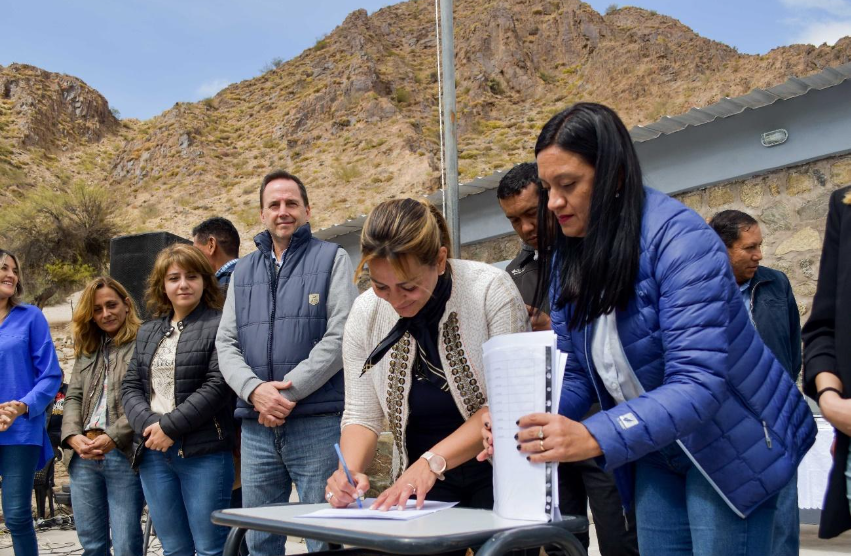 En Palo Blanco, se firmó un convenio con productores de la Cooperativa El Kakán para construir un Centro de Apoyo Productivo y un Punto de Venta Comercial. Este proyecto, con una inversión de 50 millones de pesos, beneficiará a más de 30 productores. El centro contará con una sala de producción para curtiembres y marroquinería, lo que permitirá agregar valor a los cueros de ovejas y cabras, que se utilizarán en la fabricación de bolsas, carteras y calzado.