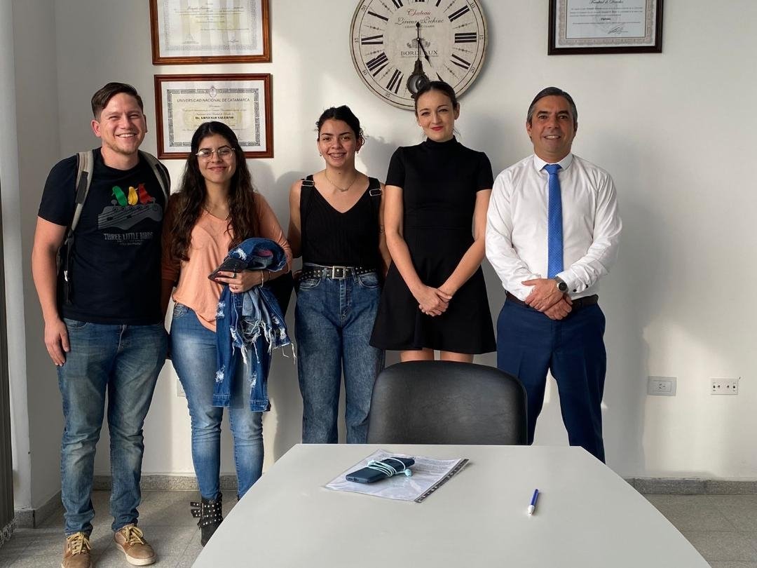 El decano de la Facultad de Derecho de la UNCA, Dr. Gonzalo Salerno, junto a la secretaria Institucional y de Relaciones con la Comunidad, Gina Bertolone, recibieron al equipo de alumnas que representarán a la institución en la XVIII Competencia Interuniversitaria de Derechos Humanos, que se realiza en la ciudad de La Plata, hasta el 2 de septiembre