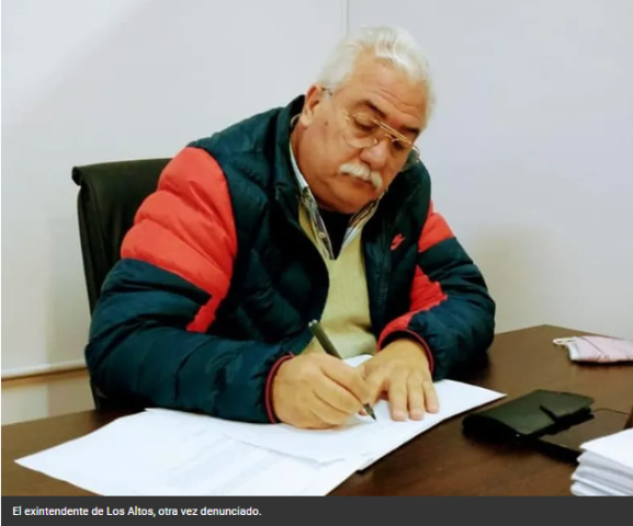 El exjefe de Tesorería de la Municipalidad de Los Altos denunció al exintendente Rafael Olveira (FT) y sus ex secretarios de Hacienda, Hugo Ruíz y Jorge Nieva, por los presuntos delitos de abuso de autoridad y/o incumplimiento de los deberes de funcionario público, al asegurar que era obligado a retirar y cobrar cheques de la Municipalidad para entregar el dinero en efectivo a estos funcionarios. Asegura que llegó a retirar $7 millones y que presentó la denuncia por la inquietud que le generó la investigación del Tribunal de Cuentas.