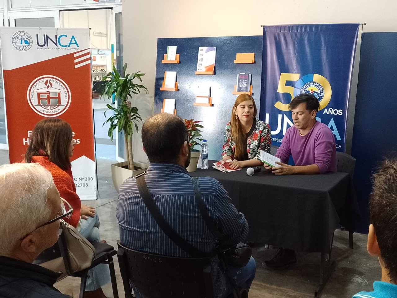 Esta mañana, en el marco de la Feria del Libro de Catamarca, los poetas Estefanía Herrera y Víctor Aybar, docente y egresado de la Facultad de Humanidades, realizaron la presentación dialogada de los libros “Cabrillas en el aire” y “Desnuda”.