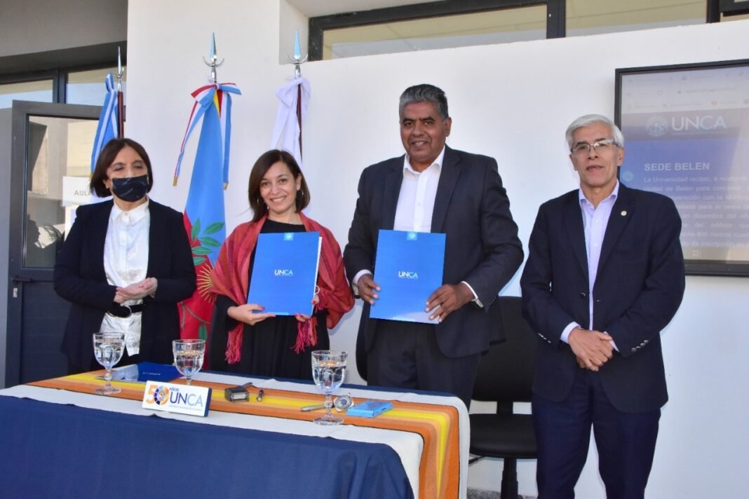 En este contexto, la decana de Humanidades, Lic. Lilia Exeni firmó un convenio de cooperación entre la Facultad de Humanidades y la Municipalidad de Belén, en el que se acordó el dictado de la Diplomatura Universitaria en Geografía Física. Los objetivos de la propuesta son abordar los grandes desafíos actuales de la Geografía y sentar las bases para la gestión integrada del territorio, contando con instrumentos de análisis que permitan el conocimiento y manejo de las mecánicas de funcionalidad, que poseen los diferentes tipos de paisajes.