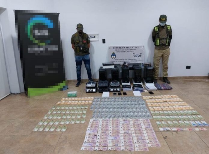 En el lugar, los gendarmes incautaron dinero en efectivo nacional y extranjero, teléfonos celulares, máquinas contadoras de billetes y demás documentación de relevancia.