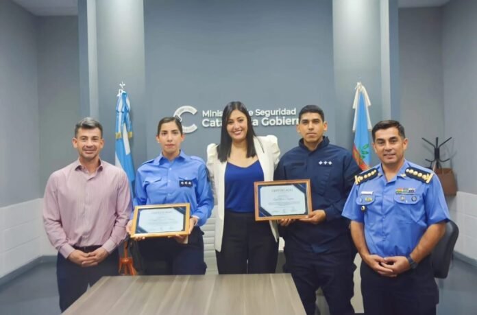 La entrega de certificados fue un momento culminante, reconociendo a aquellos que aprobaron con excelentes resultados. Entre los distinguidos se encuentran los Oficiales Principales María Eugenia Chávez y Luis Alexis Segura de nuestra Institución Policial, destacándose por su dedicación y desempeño excepcional en el curso.