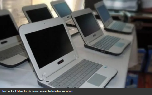 El exedirector de una de escuela de Ambato fue imputado por apropiarse de una importante cantidad netbooks que se encontraban en el establecimiento escolar proporcionadas por el Estado. La denuncia fue realizada en noviembre del año pasado por el área de Sumarios del Ministerio de Educación y los hechos ocurrieron entre 2016 y 2019 en la escuela Nº 155 Rio De Las Casas Viejas, de ese departamento. En paralelo se ordenó el apartamiento del cargo del directivo.