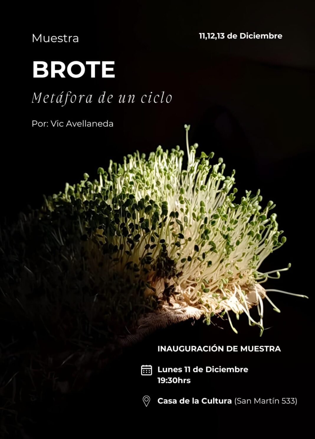 Vic Avellaneda, con una trayectoria diversa en disciplinas como dirección de arte, restauración cromática, ilustración digital, cerámica, grabado y diseño gráfico, ha consolidado su enfoque en el diseño a lo largo de los años. Su carrera artística comenzó con proyectos colectivos y muestras junto a otros artistas locales, y «Proyecto Brote» representa un hito significativo al marcar su primera exposición individual.
