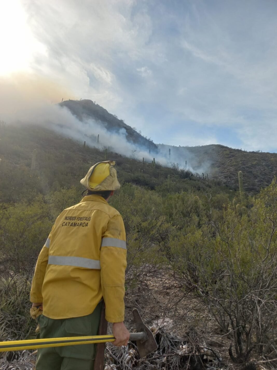 l incendio se encuentra ACTIVO; está ubicado al este del km 1153 de la Ruta Nac. Nº 60 en la Cuesta la Cébila.