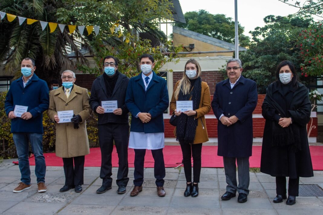 En la ocasión se procedió al descubrimiento de una placa recordatoria para el personal de salud como homenaje al compromiso profesional y humano que trabajó de manera denodada en la gran lucha contra la pandemia del Covid-19.