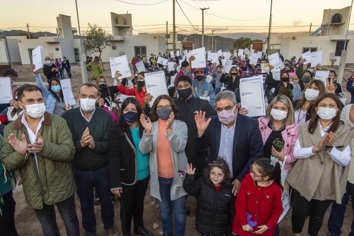 “Durante los ocho años del gobierno de Lucía, donde yo acompañé como intendente, la política pública de la vivienda, de inclusión, ha sido fundamental. Este barrio es producto de esa política”, expresó el gobernador Raúl Jalil ante los adjudicatarios.