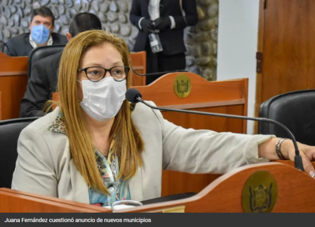 La diputada Juana Fernández (UCR) criticó el anuncio del gobernador Raúl Jalil quien indicó que se avanza con la conformación de dos nuevas comunas en Belén y en Santa María.