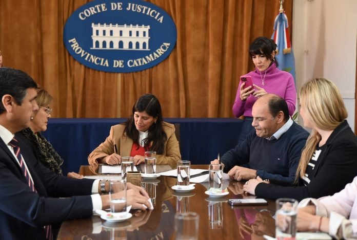 La firma del convenio contó con la presencia de la presidenta de la Corte de Justicia, Fernanda Rosales Andreotti; los ministros Verónica Saldaño, Hernán Martel y Miguel Figueroa Vicario; así como Gabriela Molina, secretaria de la Mujer, acompañada por su equipo y representantes de la Oficina de Atención a Víctimas de Delitos. Todos ellos coincidieron en la importancia del trabajo conjunto entre las instituciones para abordar esta problemática social que afecta a toda la comunidad.