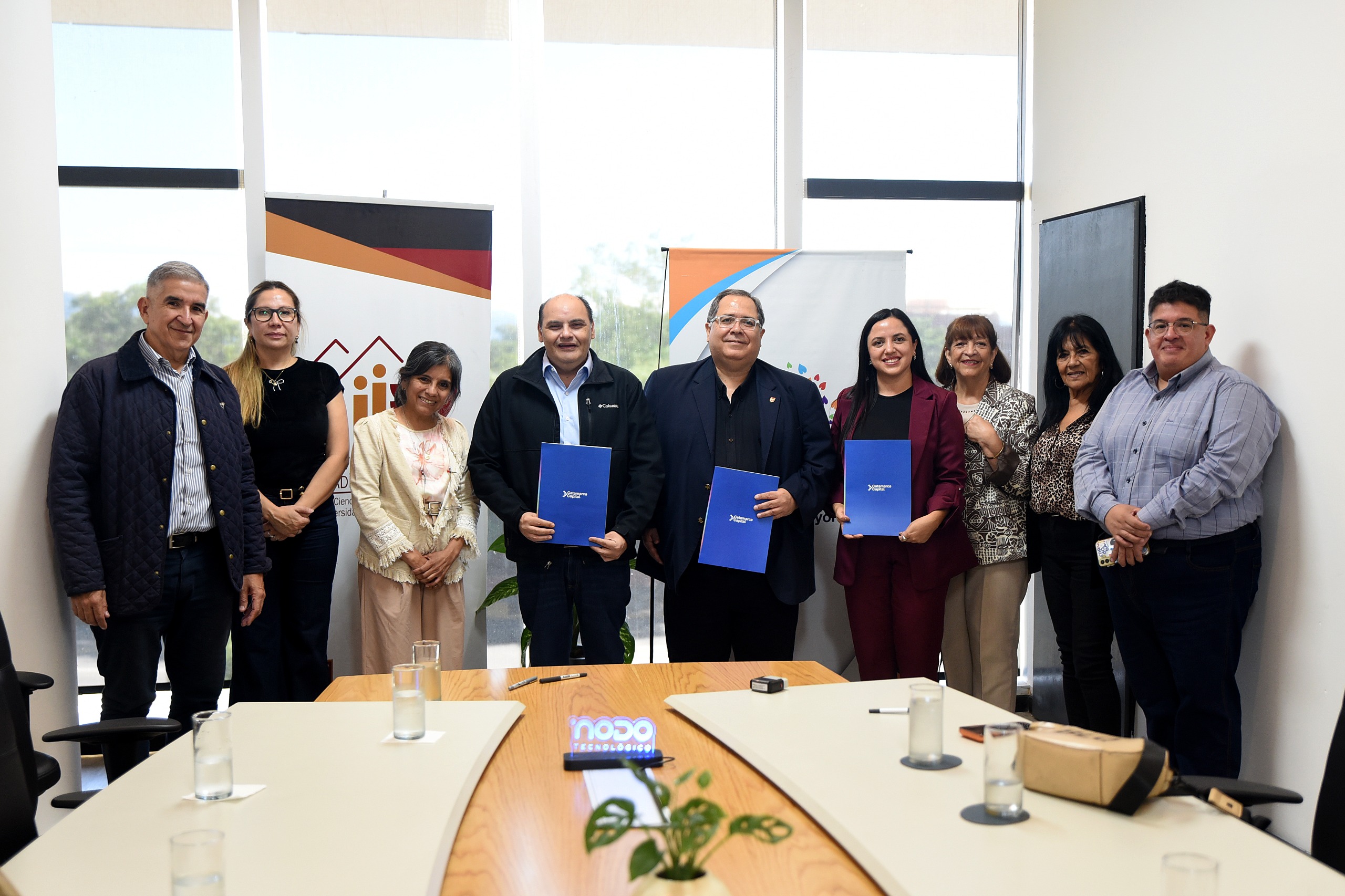 En la firma del convenio estuvieron presentes la Secretaria de Relaciones Institucionales, Evelin Sotomayor; el Secretario de Posgrado de la UNCA, Dr. José Alberto Yunis; y los coordinadores Dr. Daniel Quiroga y Efraín Nieva.