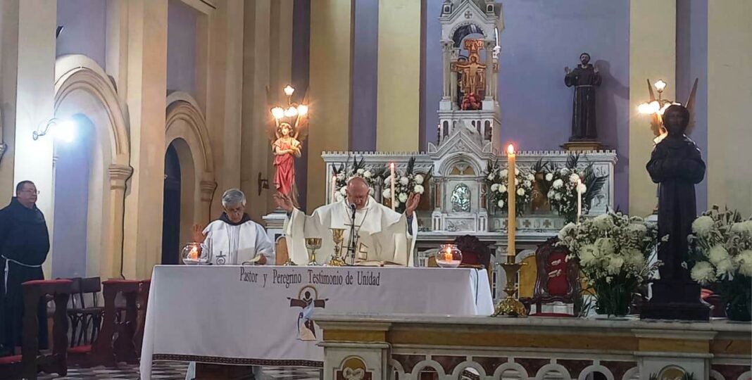 En esta jornada, en que se reflexionó sobre “Francisco de Asís, hermano de todos”, la Santa Misa fue presidida por el obispo diocesano, Mons. Luis Urbanč, y concelebrada por Fr. Julio Bunader, Guardián del Convento franciscano. Se unieron a esta Eucaristía miembros de la Orden Franciscana Seglar, autoridades y personal del Colegio Padre Ramón de la Quintana y fieles en general.