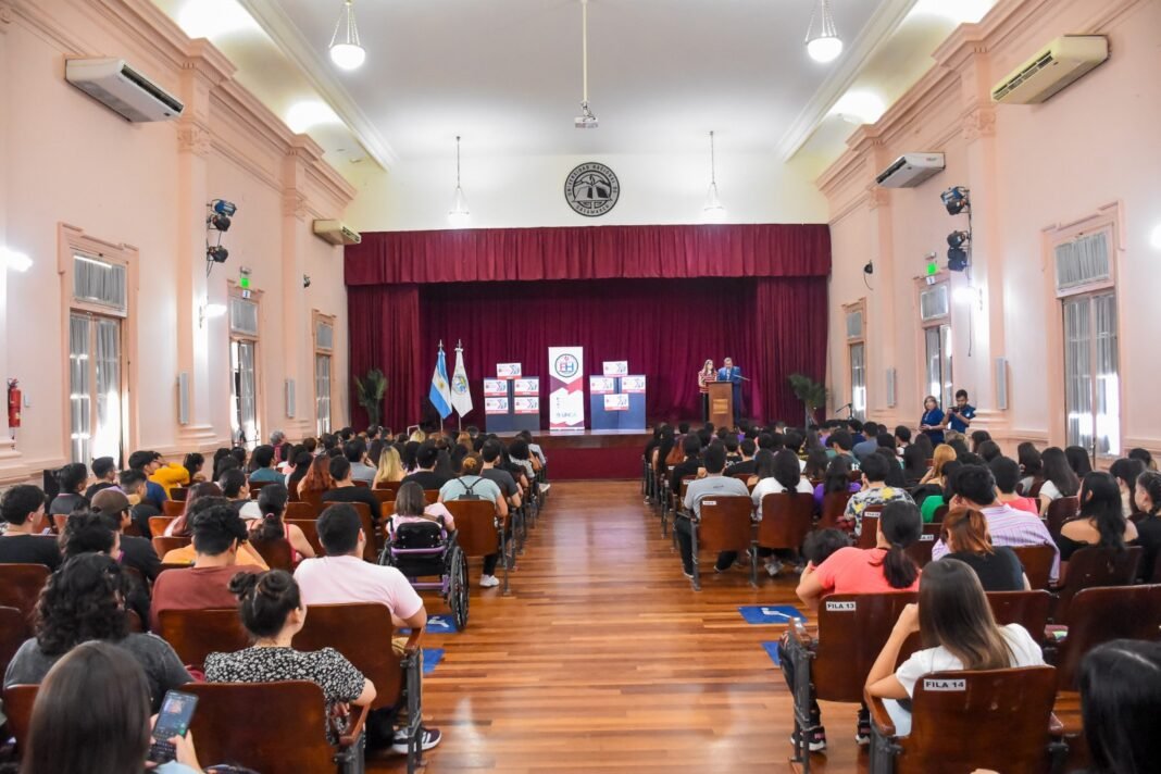 “Sabemos que es un tránsito difícil porque vienen del nivel secundario, donde no han desarrollado todas las herramientas, todas las capacidades técnicas de estudio, disciplina de trabajo cotidiano. Pero hoy comienza una nueva etapa, en la que sus propias responsabilidades y sus propias convicciones van a ser lo más importante. El plantel docente no docente y el equipo de la facultad están para ayudarlos y acompañarlos, pero las decisiones de fondo son de ustedes”, señaló Arellano.
