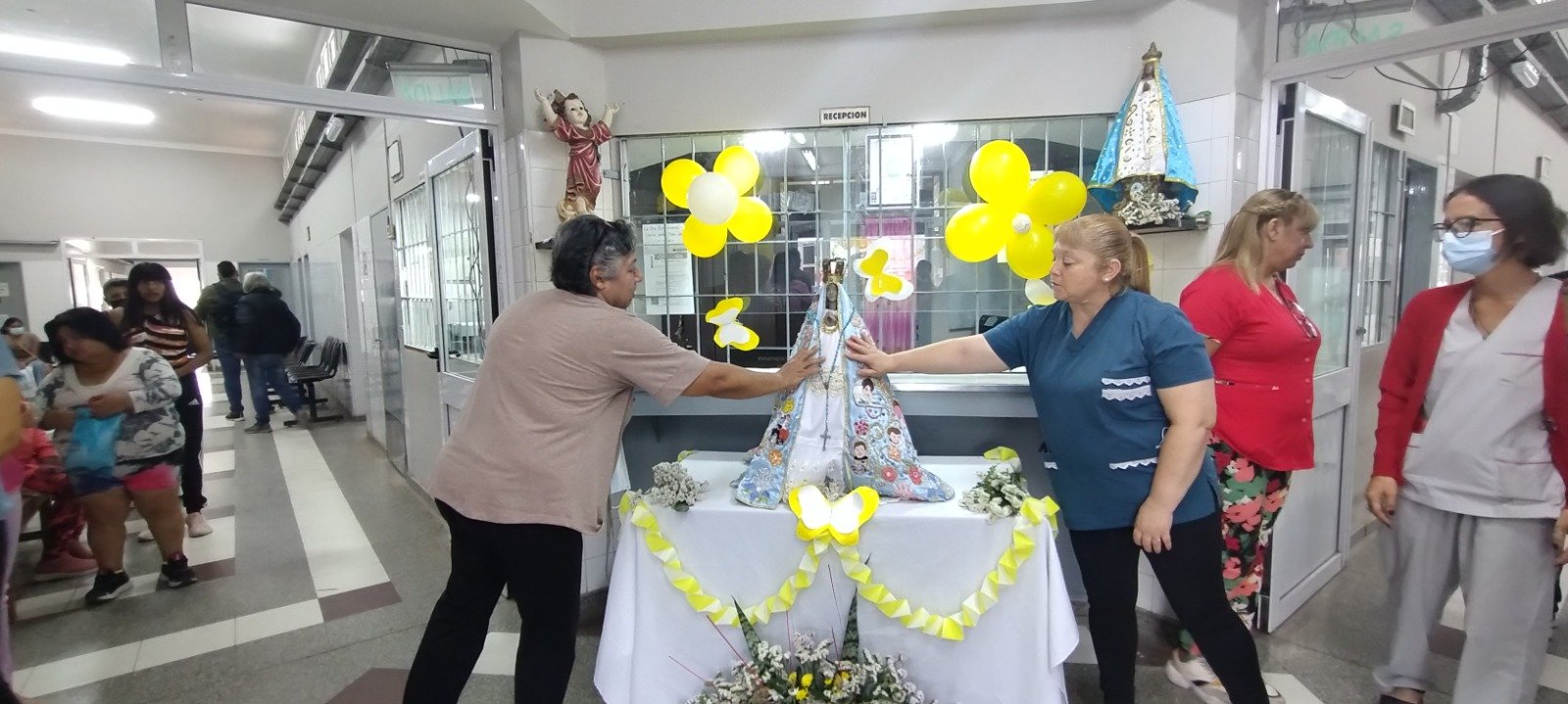 Luego, la Sagrada Imagen visitó el CAPS Dr. Carlos Bravo, ubicado en la zona sur de la ciudad capital, donde le brindaron una emotiva bienvenida con las melodías del Ave María interpretado con armónica por un miembro del centro de salud.