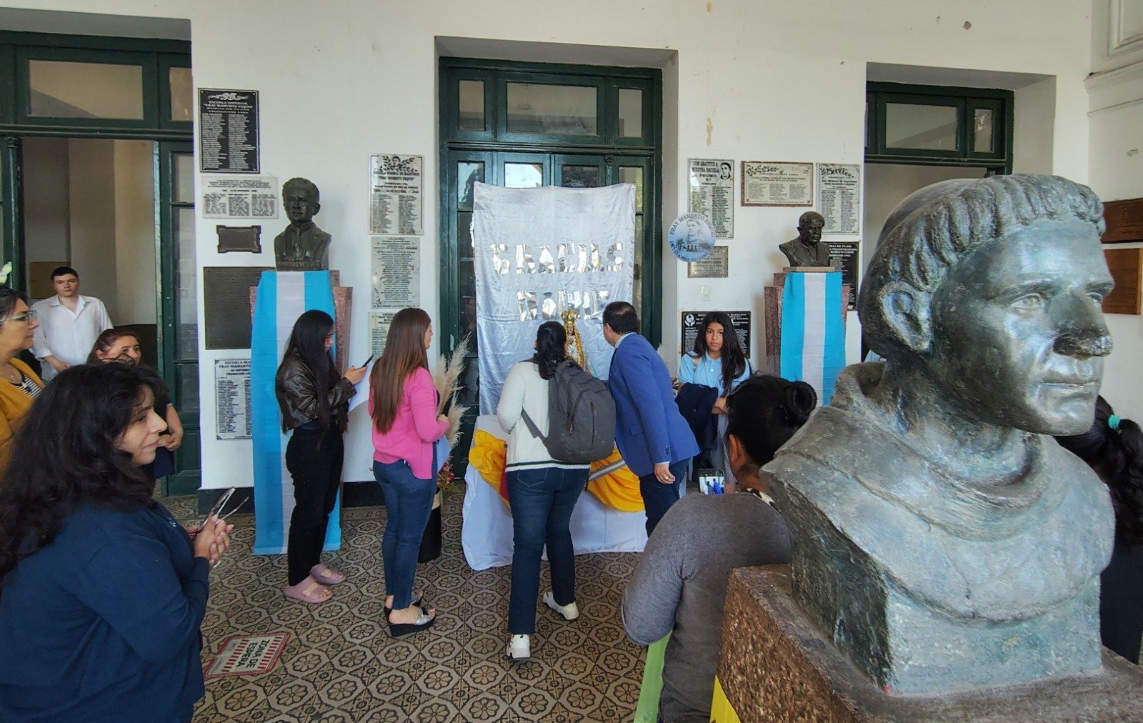 Con mucha emoción, la Madre Morena fue recibida por directivos, docentes y alumnos con abanderada y escoltas, en el hall de ingreso al edificio de la institución educativa que comparte por la tarde con la Facultad de Humanidades de la Universidad Nacional de Catamarca.