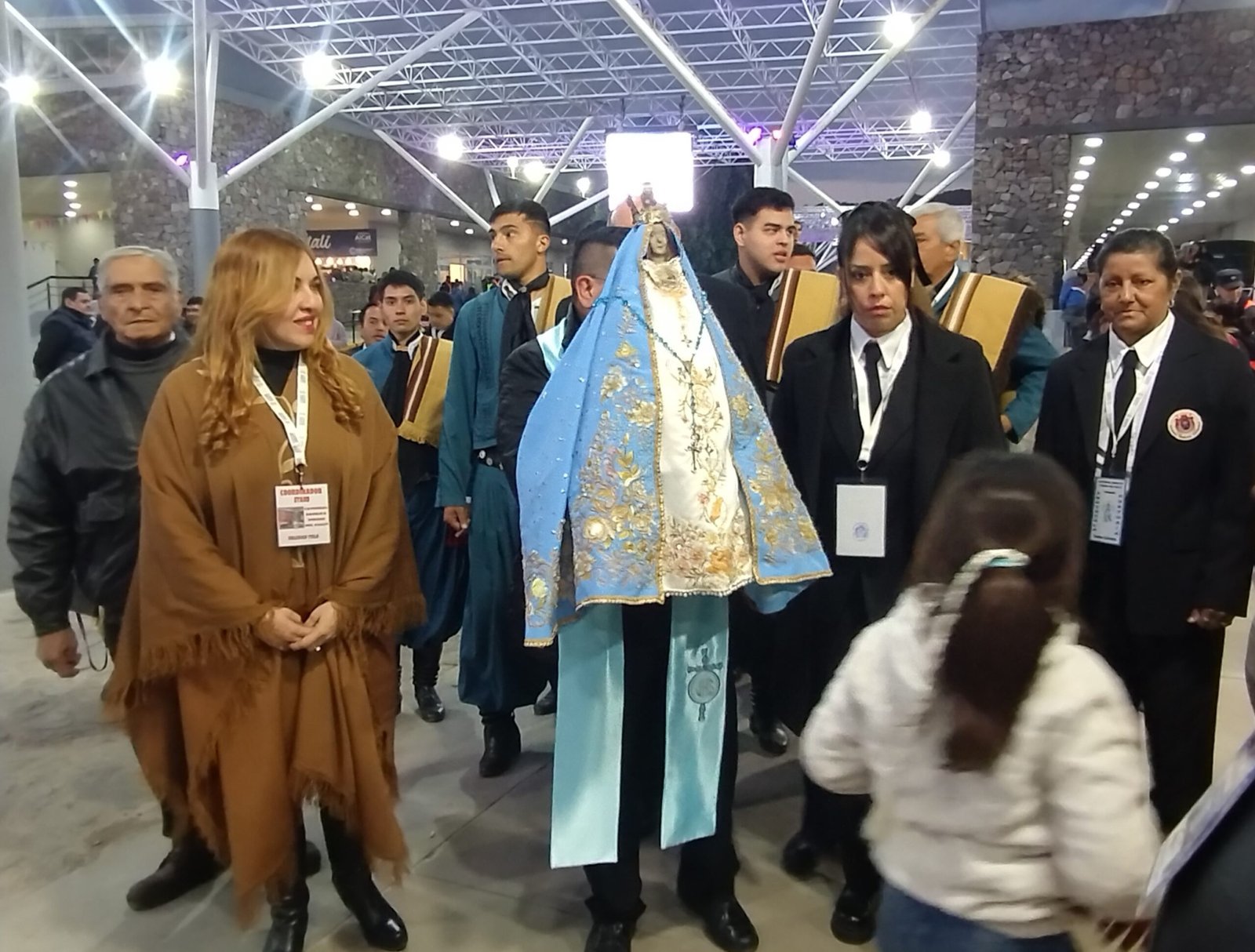 Después las imágenes de la Madre del Valle y del Beato Mamerto Esquiú fueron trasladadas hasta el Pabellón de Turismo, desde donde bendecirán y darán la bienvenida a los visitantes que llegan a Catamarca para vivir estas jornadas de cultura y tradición donde la fe está presente.
