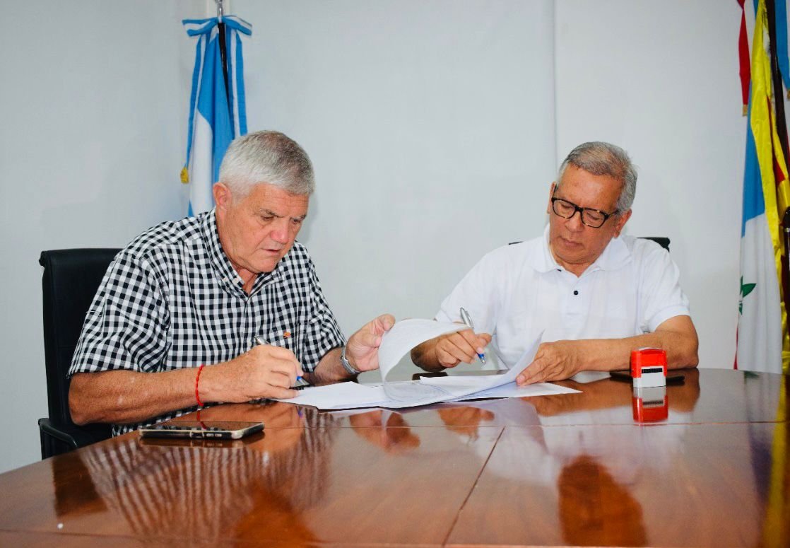 El ministro de Ciencia e Innovación Tecnológica, Lic. Isauro Molina junto al ministro de Cultura, Turismo y Deporte Roberto Brunello, firmaron un convenio de subvención.