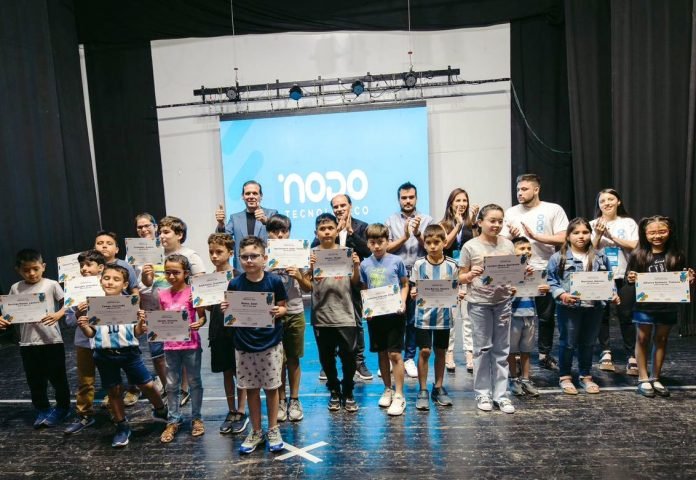 Acto seguido, tomó la palabra el intendente Gustavo Saadi quien agradeció a los papás por haber confiado en el Nodo Tecnológico pero sobre todo por apoyar a sus hijos y a sus hijas. “El presente, pero sobre todo el futuro va a ser un futuro absolutamente dominado por la tecnología, por lo digital, y es importante que los niños y niñas de nuestra ciudad, de toda la provincia, se vayan formando en esas tecnologías” explicó Saadi.