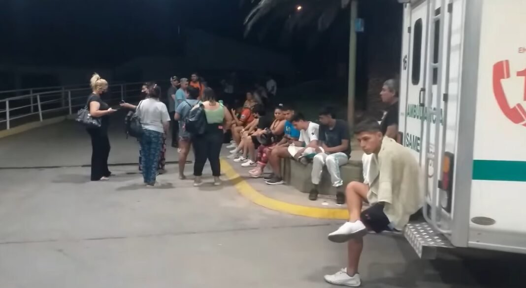 Un lamentable hecho se registró anoche cuando se tuvo que suspender los festejos de Carnaval en Miraflores por un aparente cuadro de intoxicación en varios bailarines de una comparsa. Según las primeras informaciones, más de 25 bailarines de la comparsa Ilusiones Argentina y Murga Lokura debieron ser trasladados al Hospital San Juan Bautista y al hospital de Niños. Al lugar asistieron alrededor de cinco ambulancias que trasladaron a los jóvenes.