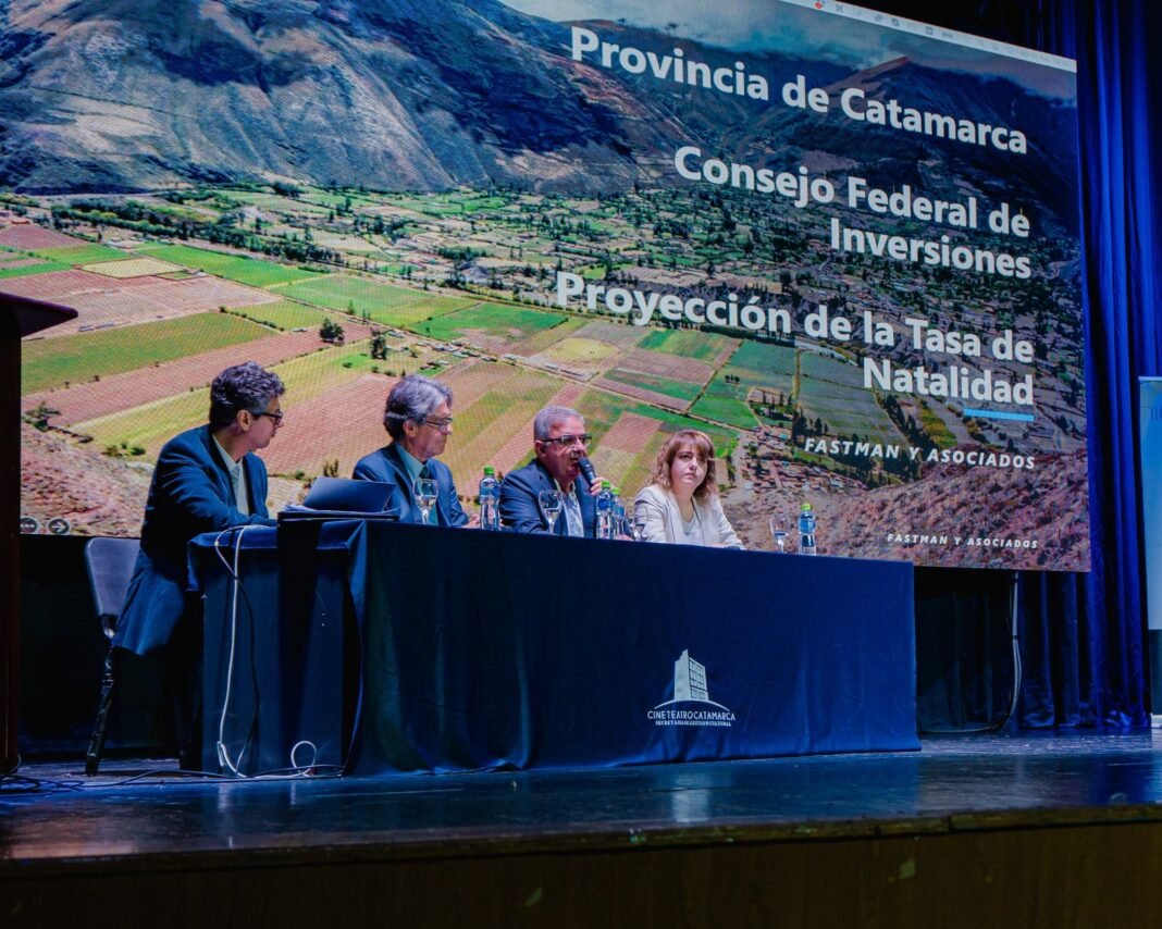 Alberto Fastman durante su disertación dio detalles sobre el estudio realizado. Explicó el descenso de la tasa de natalidad y remarcó “lo que está sucediendo en Catamarca es un fenómeno mundial”, y añadió que “dentro de 20 años si nada cambia, la tasa de natalidad será de 6,25%, es decir, pasamos de 9 hijos cada mil habitantes a 6 hijos por cada mil habitantes. Durante el 2024 han nacido 4.114 niños y dentro de 20 años el número de nacimientos pronosticados va a ser de 2.792 aproximadamente”, explicó.