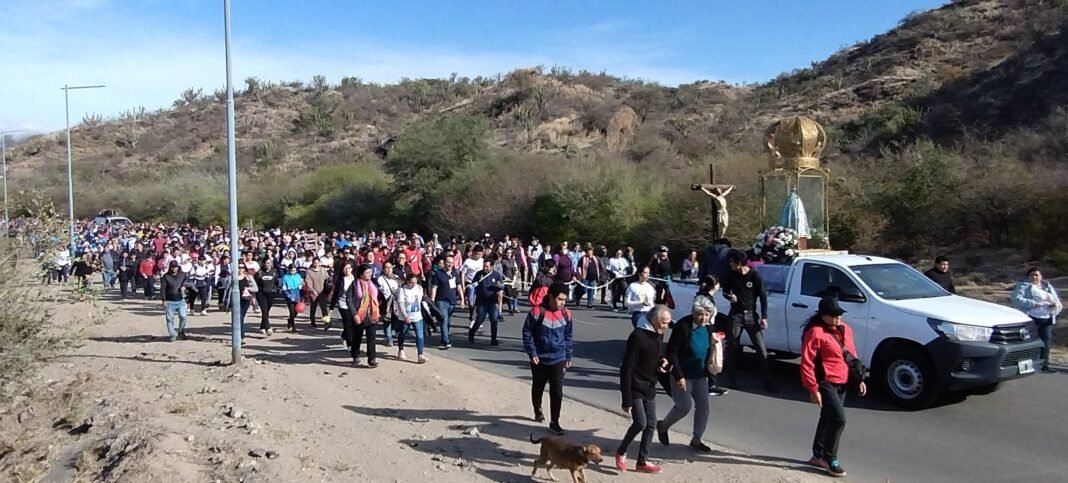 La alegre caminata partió alrededor de las 15.30 desde la plaza de Choya con las imágenes del Cristo Crucificado y la Madre del Valle, y recorrió la avenida Virgen del Valle hacia el norte rezando y cantando. En el trayecto, los peregrinos pudieron acercarse a recibir el sacramento de la Reconciliación impartido por los sacerdotes que sirven en la Catedral Basílica y Santuario mariano, padres Gustavo Flores (rector) y Ramón Carabajal (capellán).