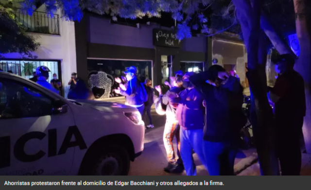 Ahorristas de la firma Adhemar Capital llevaron su protesta a la casa de Edgar Bacchiani y otros allegados a la firma. Fuerte presencia policial.