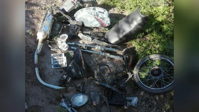 Efectivamente, en el lugar la policía encontró partes de la moto robada a Toranzo: un tanque de combustible negro, un asiento negro, dos cachas negras bajo asiento, un barral de dirección completo con cristo, un manubrio negro, una rueda delantera con cámara y cubierta, un guardabarros trasero negro, un manubrio negro, un reposapié delantero, dos reposapiés traseros de color gris, un varilla de freno, un cubre cadena negro, un agarre de mano trasero negro, un tablero de velocidad, un caño de escape, un comando de luz, un faro de luz delantero, un chapa patente 755-KAX, partes del cuadro de la motocicleta cortado con el número limado, entre otros.