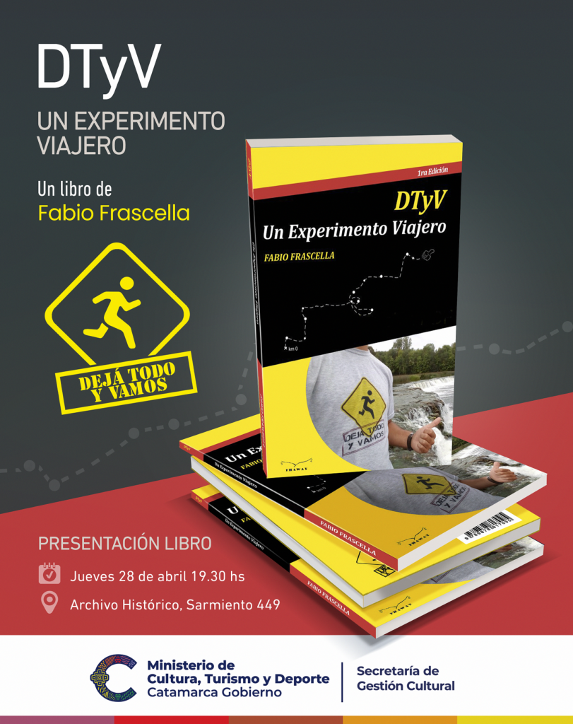 El Archivo Histórico de la provincia será escenario este jueves 28 de abril, de la presentación del libro «DTyV. Un experimento viajero» de Fabio Frascella.