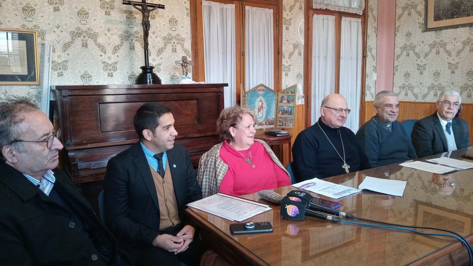 Durante la mañana de este viernes 30 de junio, se llevó a cabo la presentación del Primer Encuentro de Educadores de Instituciones Públicas de Gestión Privada de Catamarca, que tendrá lugar entre los días 6 y 7 de julio próximos, en la Casa de Retiros Emaús, camino a El Jumeal. Los detalles de esta importante convocatoria fueron dados a conocer por los integrantes del equipo de conducción de la Vicaría de Educación, el diácono Sergio Colósimo, la Mgter. Ana María Brunás, el Lic. Luis Herrera y el CPN Manuel Luna Clarasó, acompañados por el obispo diocesano, Mons. Luis Urbanč, y el director de Educación Privada de la provincia, Prof. Juan Figueroa, en el transcurso de una conferencia de prensa brindada en el Obispado local.