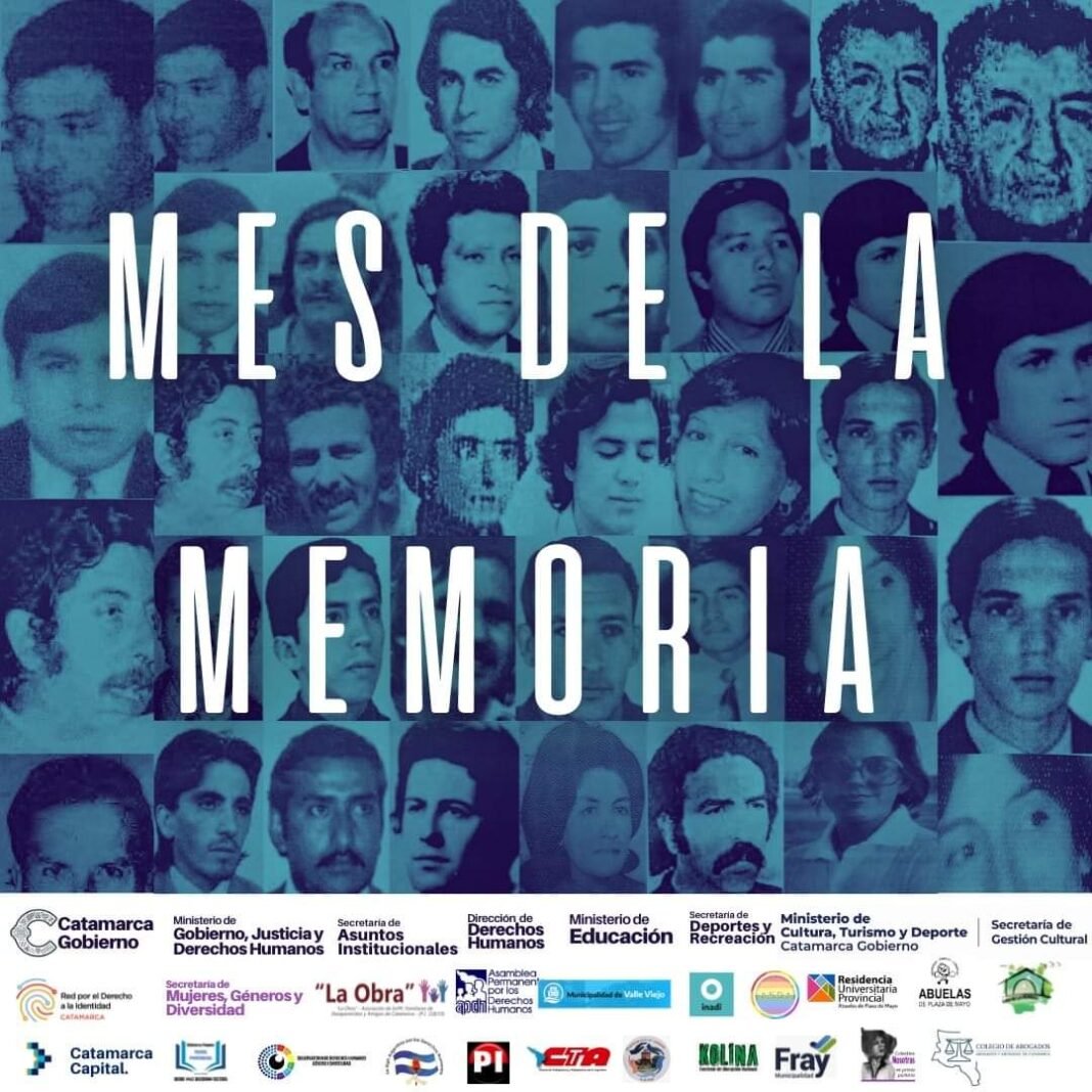 Esta nutrida agenda es el resultado del trabajo conjunto de los organismos del Ejecutivo Provincial, los municipios de Capital, Valle Viejo, Fray M. Esquiú, El Rodeo, INADI y las asociaciones Casa de la Memoria, La Obra, APDH Regional Catamarca, Delegación de Derechos Humanos de Valle Viejo, Colectiva, Nosotras Ex Presas Políticas, La Liga por los Derechos Humanos, la Biblioteca Popular Manuel Ponferrada, Observatorio de Derechos Humanos, Género y Diversidad de la Cámara de Diputados, ASDA (Asociación Siempre Diversidad Argentina) Regional Catamarca, CTA, entre otros.